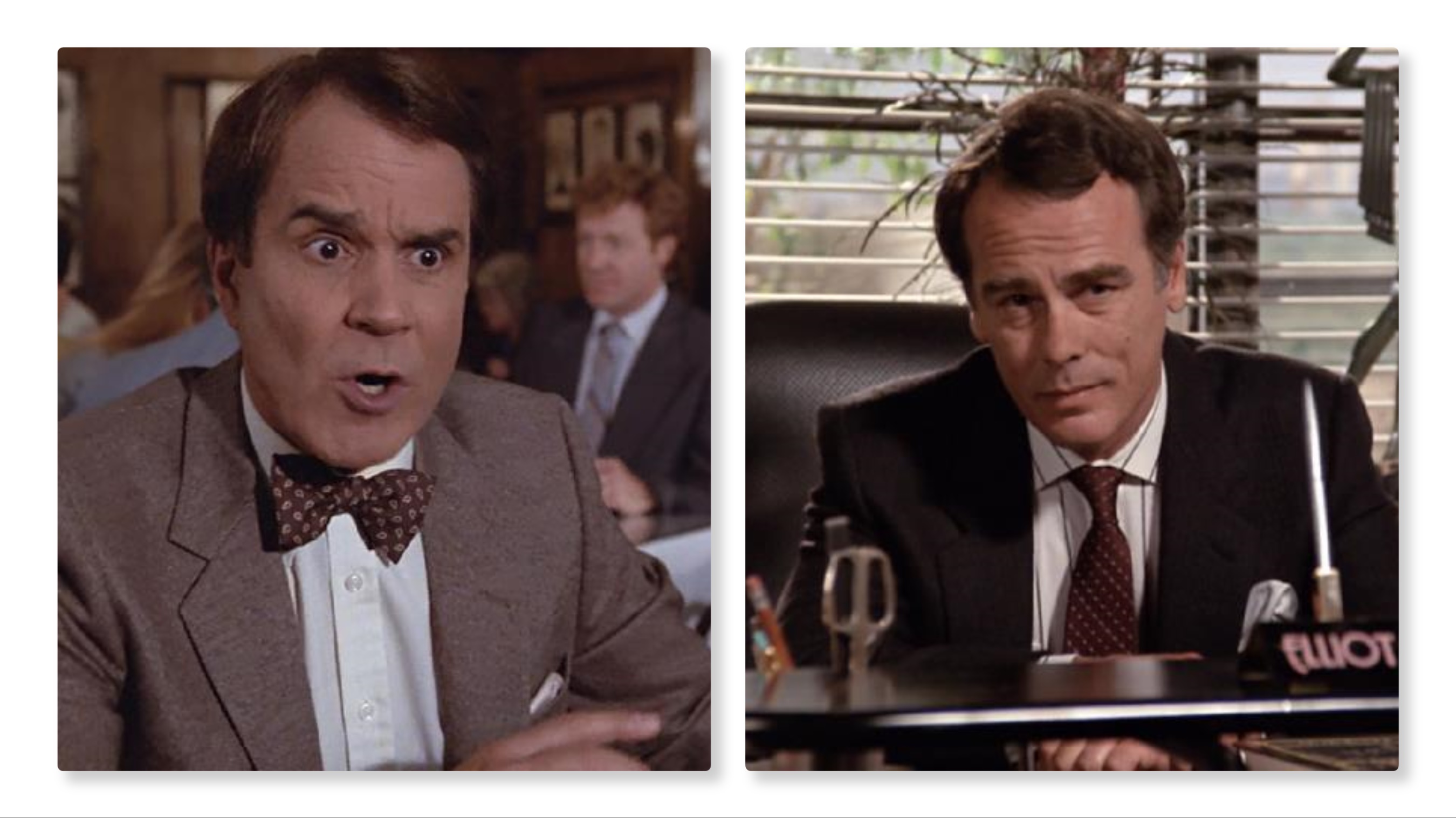 - Dean Stockwell (right) as “Live at Five” critic, Elliot Easterbrook. Stockwell is probably best known for his roles on Quantum Leap and the reboot of Battlestar Galactica.