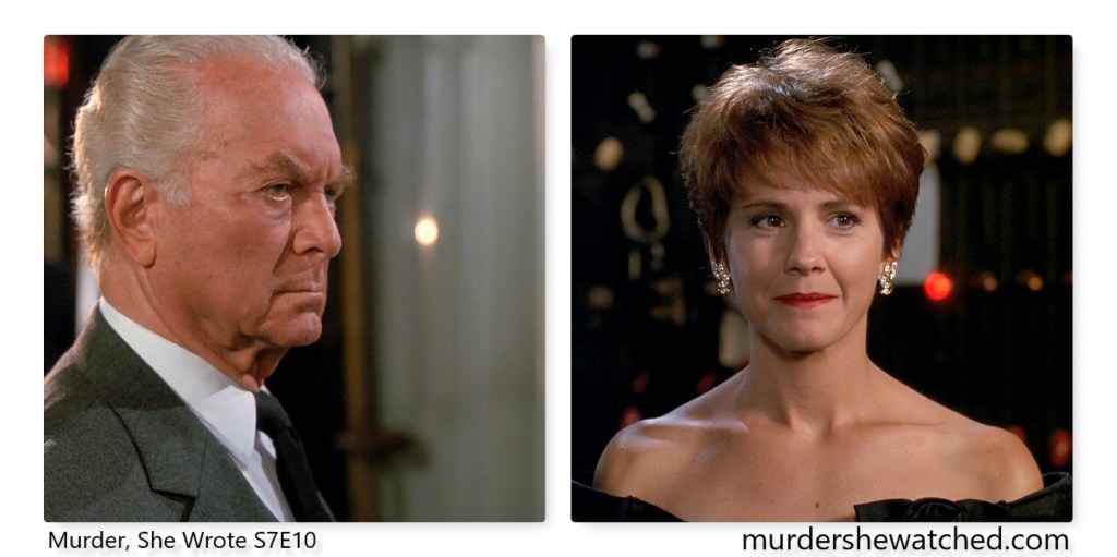 Because the episode begins with a bookend segment set in Cabot Cove, we get a brief glimpse of Joe Dorsey playing Ben Devlin, the new Cabot Cove Gazette editor and friend to Jessica. This is Dorsey’s fifth and final appearance on MSW. He first appeared in the two-parter “Death Stalks the Big Top” and then in “Showdown in Saskatchewan“, each time playing different characters. He first appeared as Ben Devlin in “Deadly Misunderstanding“, which was followed by “A Body to Die For“.