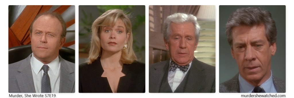 Although most Murder, She Wrote episodes tend to be stand-alone and don’t have any particularly strong connections to one another, that isn’t really true for this particular episode. There are many references to “The Last Flight of the Dixie Damsel” in this one—not just because it references Frank Fletcher’s time in the Korean War (specifically in ’51-’52), but because it explicitly makes reference to Clint Phelps (who actually makes an appearance), his wife Bonnie, and Lee Goddard, as well as the Dixie Damsel itself.