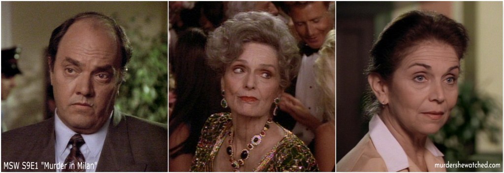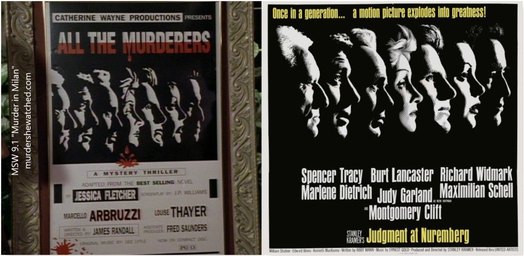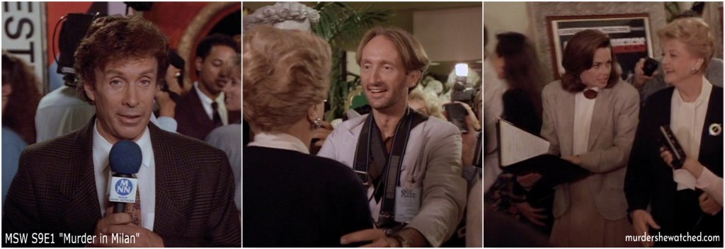 Jessica Fletcher is in Milan! Apparently, one of her books has been made into a movie titled All the Murderers and it’s premiering at the Milano Film Festival. (Note that the film festival didn’t exist at the time when this episode first aired in 1992. However, a film festival was established several years later in 1996.)