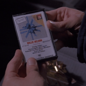 Other objects and references we see in this episode include a cassette tape of Willie Nelson’s first Christmas album, Pretty Paper, which was first released in 1979.