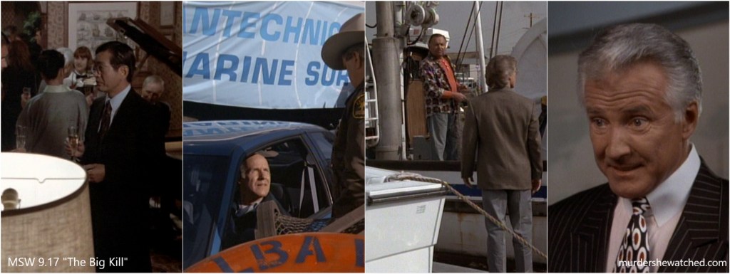Meanwhile, Eve Simpson has a new beau who isn’t very popular as his company (which is testing a subsurface marine survey boat off the coast of Cabot Cove) recently laid off many of the town’s residents.