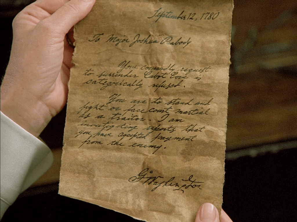 Furthermore, the premise of this episode appears to conflate him somewhat with the story of Benedict Arnold, as evidence emerges that he may have been a traitor — according to a letter purporting to be written by George Washington on September 12, 1780.