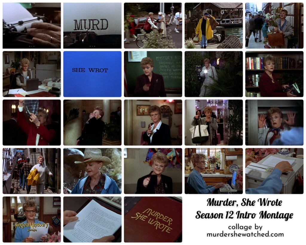 Finally, the montage concludes with Jessica typing at her computer and printing out her work. The same scenes were filmed for and included in the previous version of the opening montage. However, I noticed that the font used to credit “Angela Lansbury” in the Season 12 version was smaller than the font size used in previous versions. Perhaps this was a reflection that typical TV screens were becoming larger.