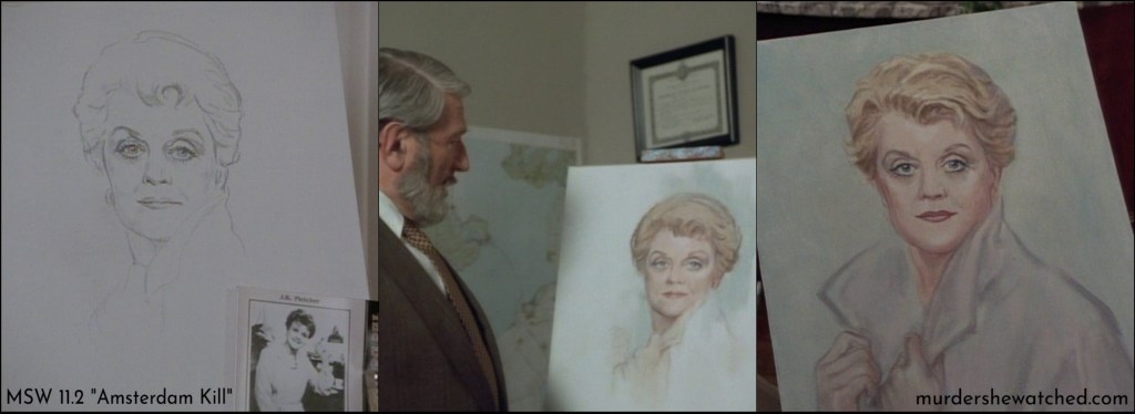 As always, I like to document some of the prop art and paintings that appear on the show. Notably, in this episode, Jessica has her portrait painted by Inspector Van Horn. While I’m not sure who the artist was in this instance, the painting is very reminiscent of one that would later be painted by Jaroslav Gebr for the movie South by Southwest.