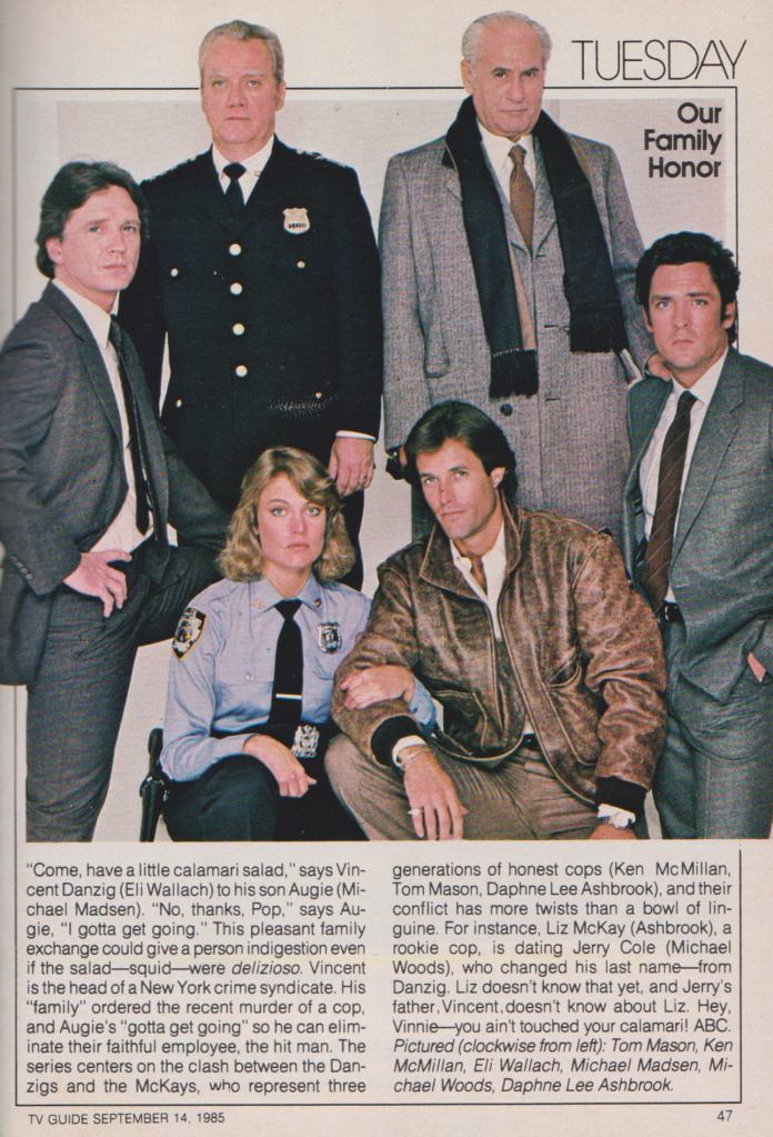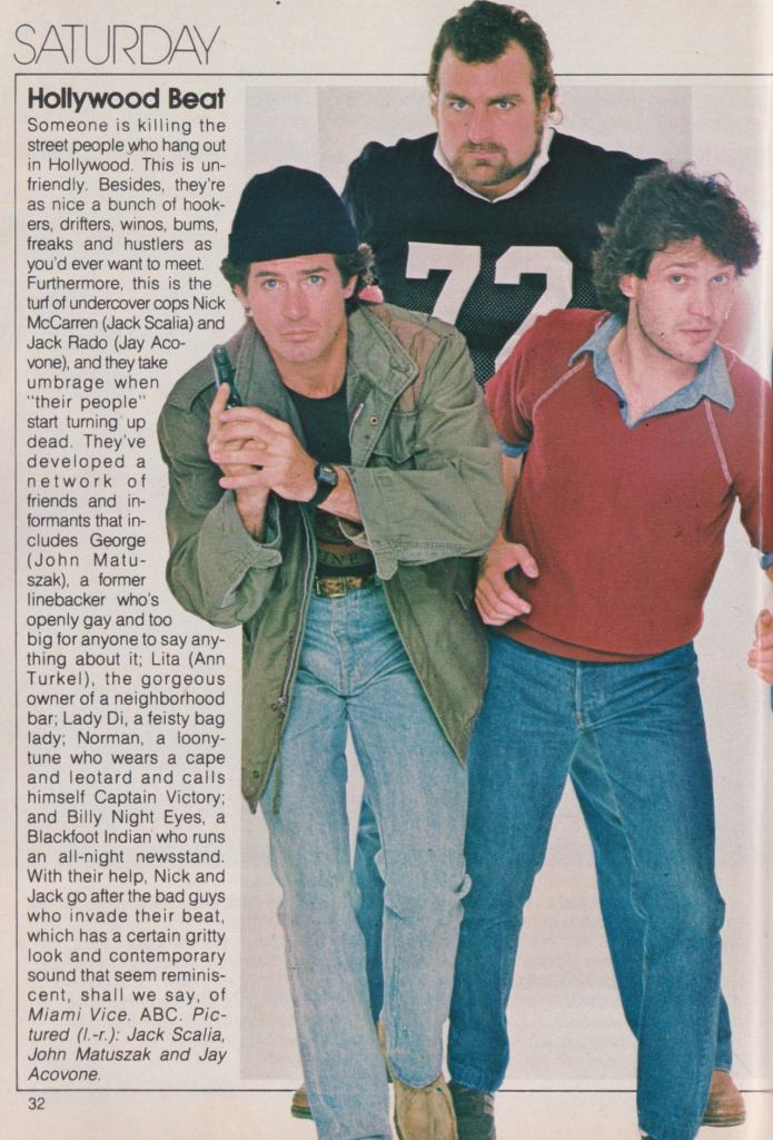 As is often the case, quite a few shows that premiered in the 1985-1986 US TV season did not make it past its first year. However, the number of (less than) one season wonders was not as large as it was in the previous year. This time, I counted only about 7 detective/crime dramas, which include: Blacke’s Magic, Fortune Dane, Hollywood Beat, The Insiders, Lady Blue, Lime Street, and Our Family Honor.