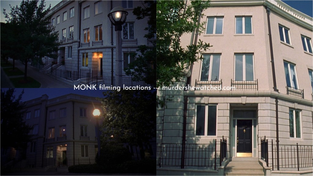 The exterior of Mr. Monk’s house appears only in establishing shots and there aren’t any scenes that actually take place outside his building.