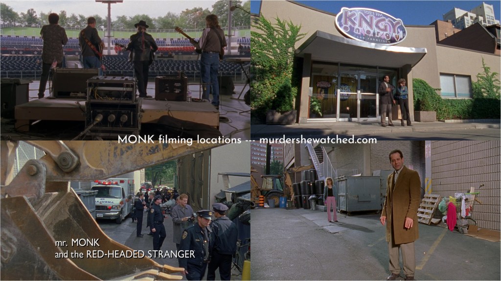 There are several other minor scenes in this episode — some of which I can identify (such as the image in the bottom left of the collage above which shows Monk’s taxi driving east on Adelaide Street West and passing Peter Street on its way to Sharona’s house). However, there are a few other scenes that are difficult to pinpoint due to lack of clues in the background or perhaps due to the city changing too much in the past 20 years. This is the case in the image in the bottom right of the collage, as well as the scenes filmed behind Sharona’s house and the subsequent crime scene.