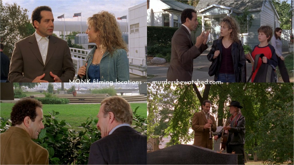 One final location that popped up in three of the earliest Monk episodes is a waterfront park where Adrian and Sharona go for walks. These appear at the end of the episodes “Mr. Monk and the Psychic”, “Mr. Monk Meets Dale the Whale”, and “Mr. Monk Goes to the Carnival”.